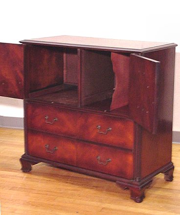CROTCH MAHOGANY MUSIC CABINET, 35''h, 36''w, 18''deep.
