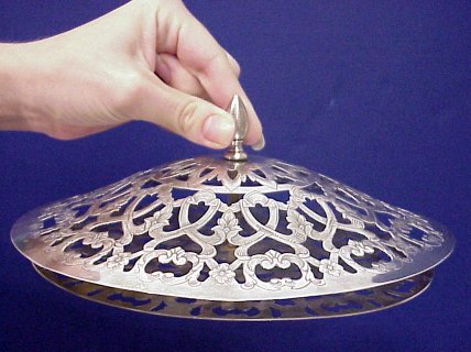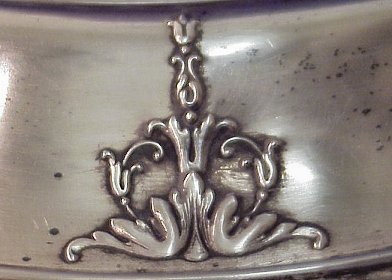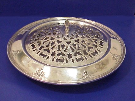 ALVIN STERLING CENTER BOWL WITH FLOWER FROG: Rolled and embossed edge bowl, 11 1/2'' dia. Stamped Alvin, the ornate frog is silverplate. Sterling is approx. 17.4 oz.