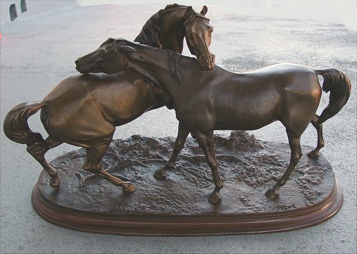 TWO WILD HORSES AFTER PJ MENE: Contemporary Bronze recast, 12 1/2''h.