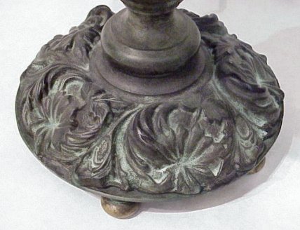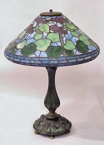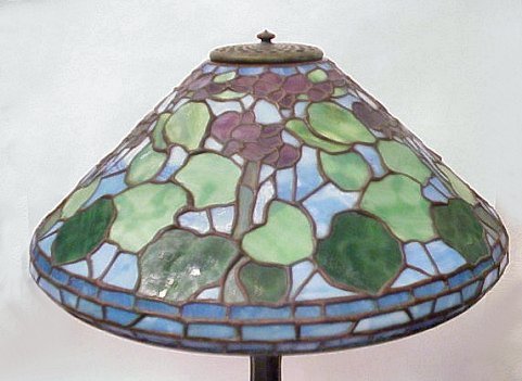 BLUE LEADED GLASS LAMP: Very well made, age unknown. 16''diam., 22 1/2''h.