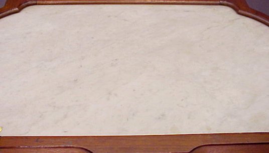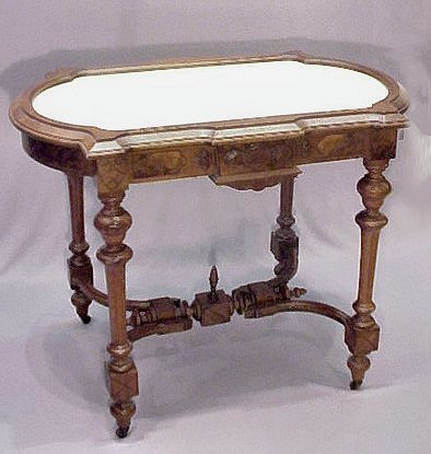 VICTORIAN MARBLE TOP TABLE: Gorgeous style, inset marble top. Note chip to marble. 29 1/2'' X 30''w X 24 1/2''