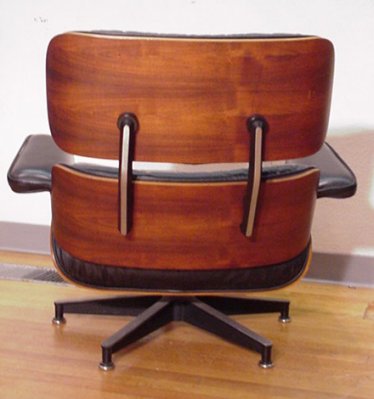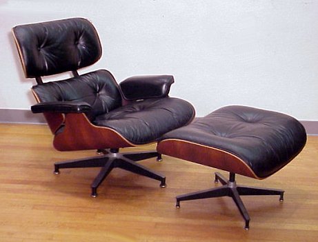 EAMES FOR HERMAN MILLER LOUNGE CHAIR AND OTTOMAN: Classic bentwood and black leather. Herman Miller label. Chair is 31''h. x 31'' x 33''. Ottoman is 17'' x 22'' x 25''. Rosewood. Label dated 1977.
