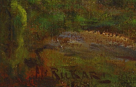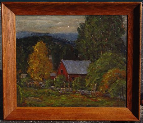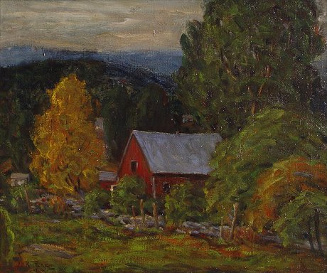 McRICKARD, James P., (American, 1872-): Pennsylvania landscape, O/C, 20'' x 24'', signed lower left, monogrammed lower right, old label attached verso with title and artist, overall with frame 24 3/4'' x 28 1/2''.