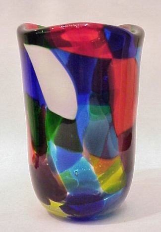 MURANO GLASS FORMIA VASE: Panes of color, 8 1/4''h. ''formia Vetri di Murano Made in Italy''.