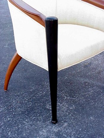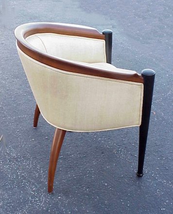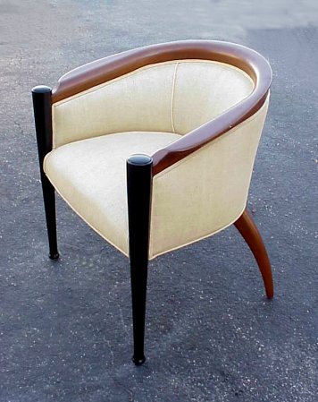 ART DECO STYLE CHAIR IN DUPONI SILK: Stunning combination of ebonized and fruit wood upholstered in dreamy Duponi silk. 30 1/2''h, 29''w.