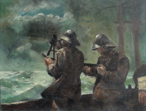 SHELTON, James, (American, 20th C): Stormwatchers, O/C, 35'' x 46'', unframed, signed lower right. Condition - Minor scuffing.