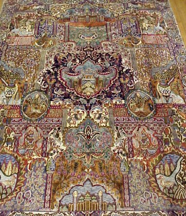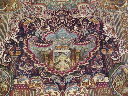 LARGE HAND TIED PERSIAN KOSHMAR CARPET: Wool pile, Approx. 9'9'' x 13'3''. Animalier motifs.