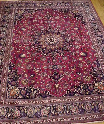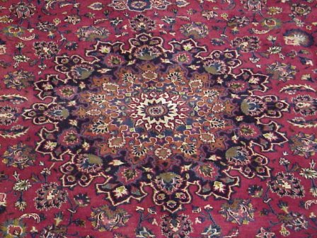 LARGE PERSIAN MASHED CARPET: Deep red, approx. 9'8'' x 13'