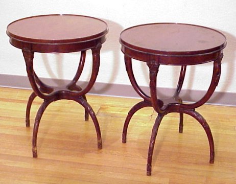 PAIR OF 1940's MAHOGANY PARLOR TABLES: Round top with wonderfully carved and curved legs. Approx. 22 1/2''dia. x 27 1/4''h.