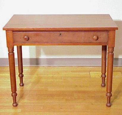 ONE DRAWER CHERRY WRITING TABLE: Single full length drawer, turned legs. 29''H, X 36'' X 19''. Nice piece of American 19th C. furniture.
