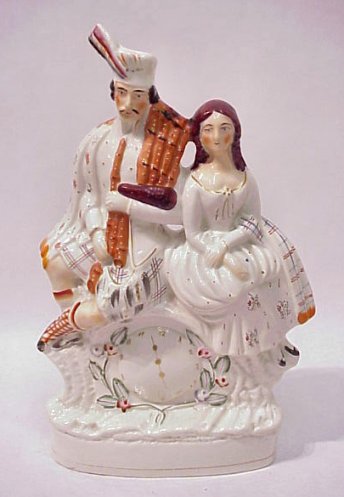 LARGE STAFFORDSHIRE FIGURE: Couple dressed in Scottish attire, 14 1/2''h.
