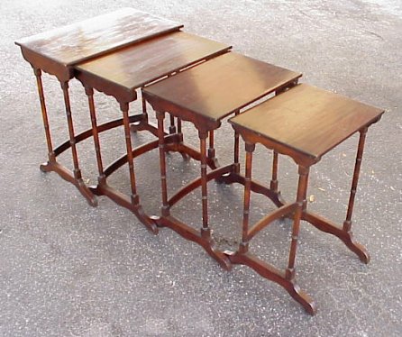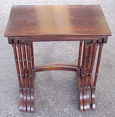 NEST OF MAHOGANY TABLES: Set of 4 graduated tables featuring bamboo turned legs. the largest is 25 1/4''h. x 23 1/2'' x 15''.