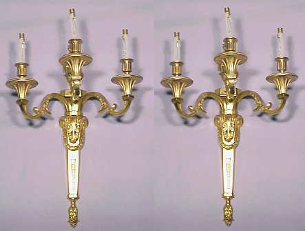 PAIR OF BRASS 3 LIGHT SCONCES: Electric, 21''h, 16''w.
