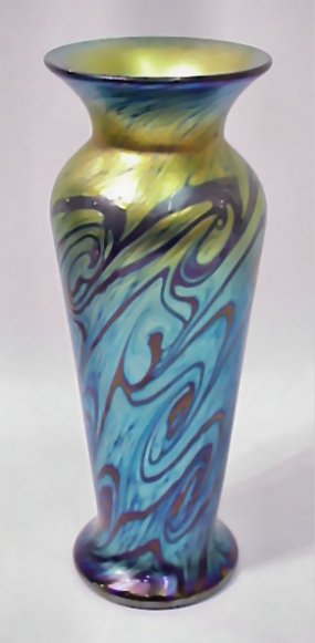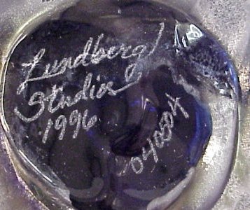 LUNDBERG STUDIO CONTEMPORARY ART GLASS VASE: Iridised cobalt, signed ''Lundberg Studio 1996 040804'', 11 7/8''h.