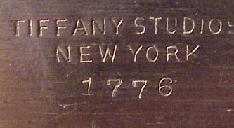 TIFFANY STUDIOS ''ADAM'' DESK BLOTTER ENDS: #1776. Signed Tiffany Studios New York. 12 1/4''l.