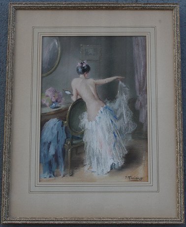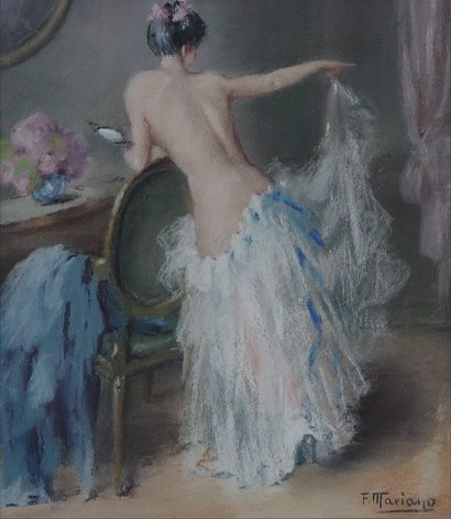MARIANO, F., (European, 20th C): ''La Robe de Tulle'', Pastel, 12 1/2'' x 9'' sight size, signed lower right, overall with frame 19'' x 14 3/4'', label affixed verso with artist and title, Haley & Steele Art Dealers label affixed verso as well.