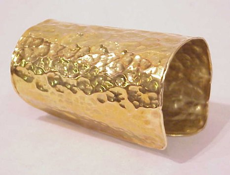 HAMMERED GOLD CUFF BRACELET: 14k yellow gold cuff with rolled edges, signed Waldman 14k, 3'', 46 grams.