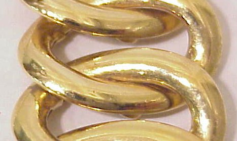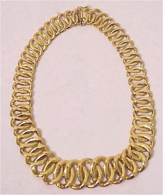 ''GOLDEN POINT'' GOLD LINK NECKLACE: Graduated 14k yellow gold oval links, pressure clasp with safety, 18''l., 96 grams, marked ''Golden Point'', 750 to both sides of clasp, and *580AR.