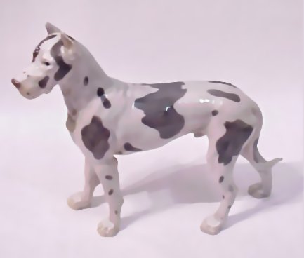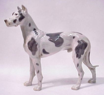 LARGE BING & GRONDAHL GREAT DANE DOG FIGURE 2124: The largest we've seen, 10 1/2''h, 12''l. Please note repair to rear leg near tail.