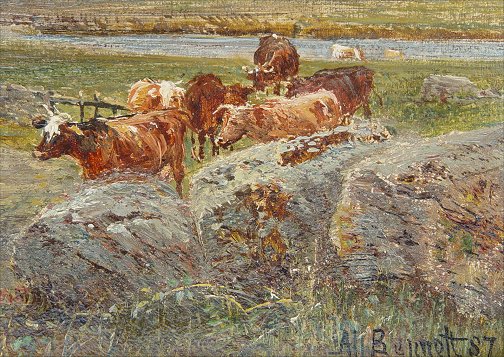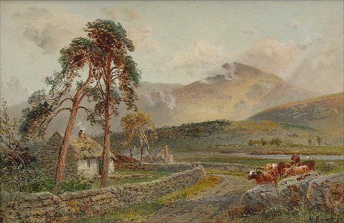 BENNETT, Alfred, (British, 1861-1916): ''North Dramore? Down Ireland'', Landscape, O/C, signed lower right, dated, titled and signed verso, 14'' x 21'', overall with frame 20'' x 27''. Condition - Some small portion of unstable paint in cloud upper margin.