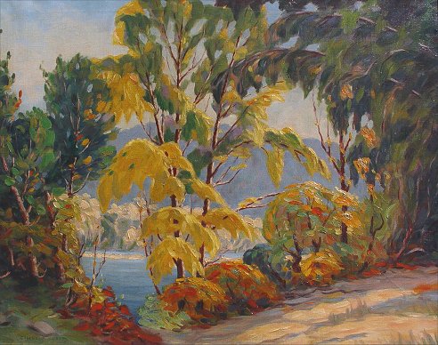 SWEET, Charles A., (American, 20th C): Impressionist lakeside landscape, O/C, 24'' x 30'', signed lower left Charles A Sweet, overall with frame 28'' x 34'', circa 1930.