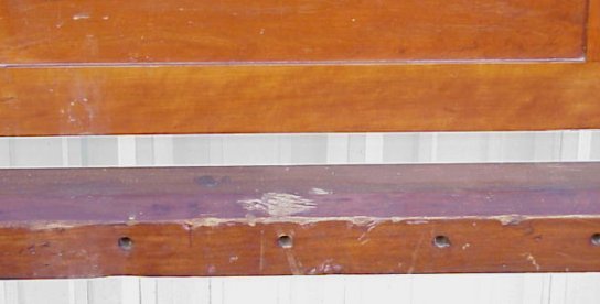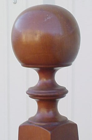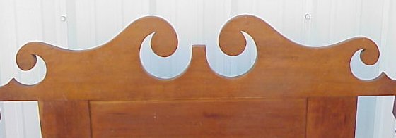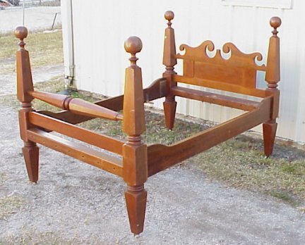 MID 19TH C CHERRY POSTER BED WITH CANNONBALL FINIALS: Shaped headboard, spinning rail at the foot board. Headboard and footboards are 57''h. Inside bed measurements. 72'' long(rails) x 53 1/2''