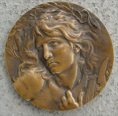 COUDRAY, Lucien, (French, 1864-1932): ''Orpheus'', Bronze medal, struck for the Exhibition Universelle of 1900, 2 3/4''dia.
