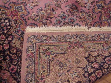 KIRMAN DESIGN KARASTAN CARPET: 9 x 12, dark rose ground. Karastan label.