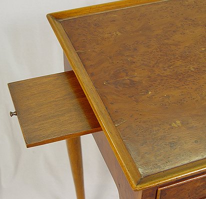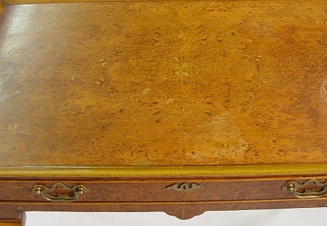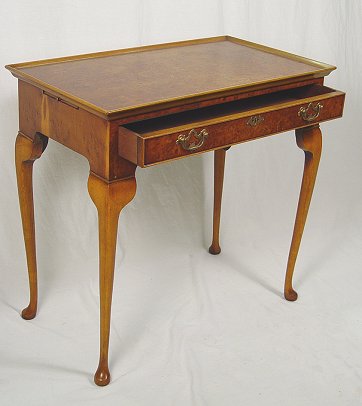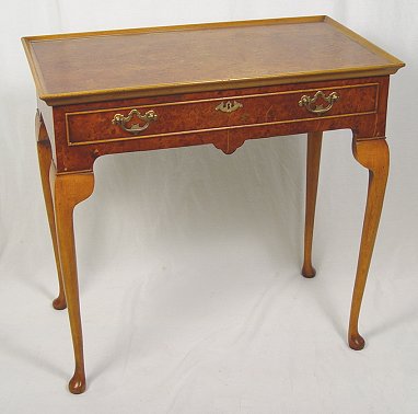 ENGLISH YEW WOOD TEA TABLE: 18th century style tea table with slides on both sides, one full length drawer, and graceful queen Anne legs. 29''h, x 30 1/2'' x 17 1/2''.
