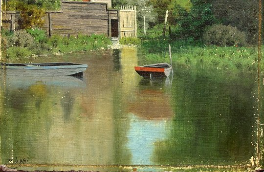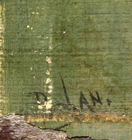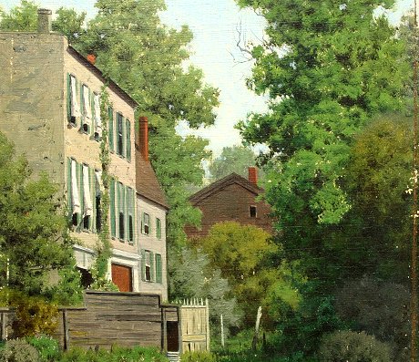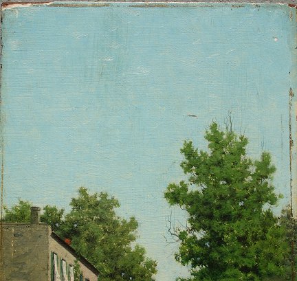 SUPERIOR AMERICAN 19TH C. LANDSCAPE: O/Wood Panel, 12'' x 6 1/4'', illegibly signed LL, possibly a scene of Georgetown, by the canal, unframed. Condition - Margin frame rub loss, sporadic specs, small dent in sky.