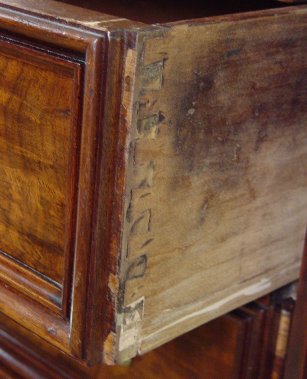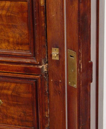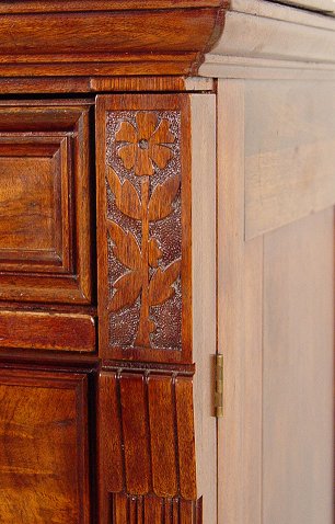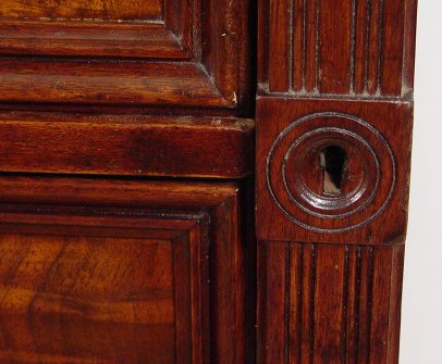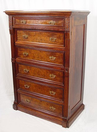 WALNUT VICTORIAN LOCKSIDE CHEST: Tall 6 drawer chest with burl walnut drawers. Carved and reeded stiles, one of which is the locking panel. 55 3/4''h, x 37 1/2'' x 22 1/2''.