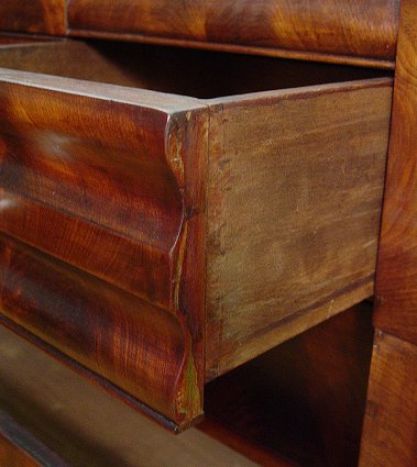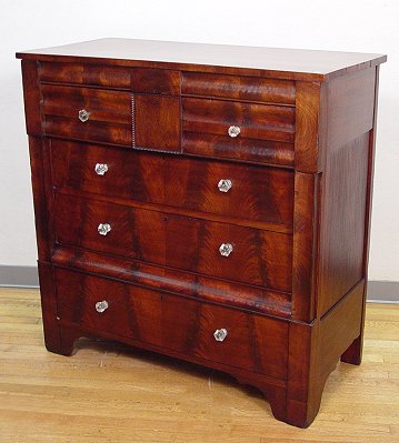 19TH C FLAME GRAINED MAHOGANY GENTLEMAN'S CHEST: Ogee top three drawers over 3 full length drawers, paneled sides. 43''H, x 43'' x 19 3/4''.