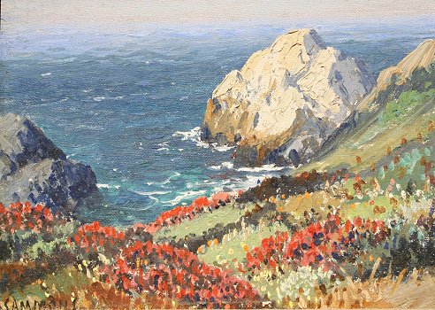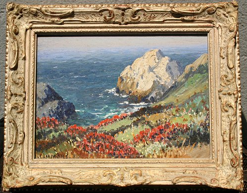 SAMMONS, Carl, (American, 1886-1968): ''Indian Paint Brush-Carmel Coast'', O/CB, 6'' x 8'', SLL, titled and dated '44 verso, antiqued gilt frame. Condition - Several pinhead flecks; good overall. Est. $1200/1800**