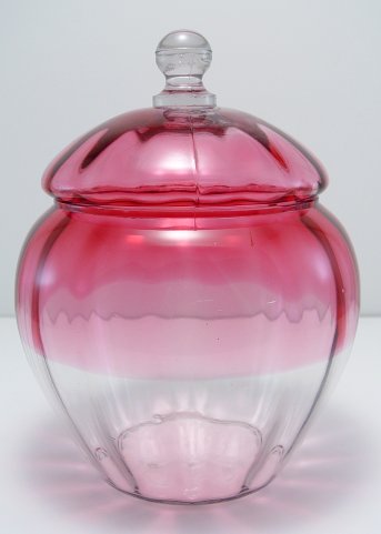 WHEELING CRANBERRY GLASS BISCUIT JAR: Hobbs Brockunier Co. Rubina glass covered jar, 9''h. 5 1/4'' dia.