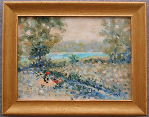 PIZZARELLI, (Italian, 20th C.): Figures in landscape, O/C, 10'' x 14'', SLR. Condition - Small fleck.