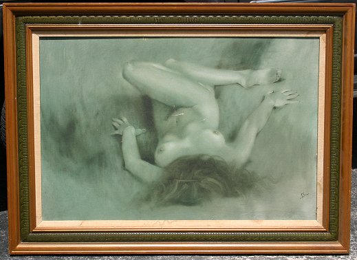 ABIETTA, James, (Native American, 20th C.) Nude portrait of the artist's wife, O/C, 24'' x 36'', SLR. Note: Abietta, after enjoying popularity in the 1970's is said to have shot himself playing Russian Roulette at age 27. His works are quite scarce and the present example depicting his wife should rank as one of his most important works. Condition - Several small scrapes. Est. $400/600**
