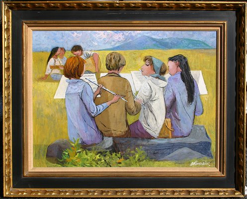 REFREGIER, Anton, (American, 1905-1979): Music Recital, 18'' x 24'', O/B, SLR, ebonized and gilded frame with wear, 24 1/4'' x 30 1/4''. Est. $800/1200**