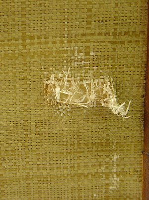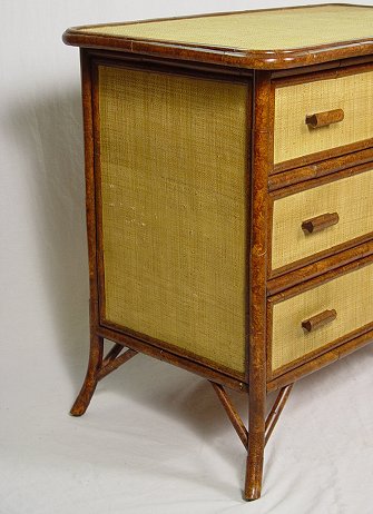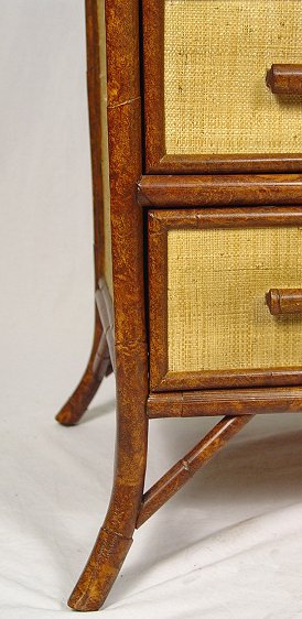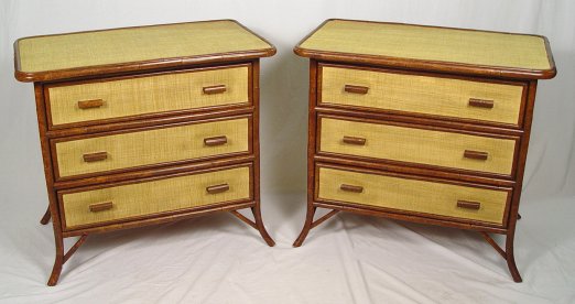 PAIR OF ART DE CHENE CHEST OF DRAWERS: Grass paper and faux bamboo contemporary chests of three drawers. 31'' x 24'' x 21 1/2''.
