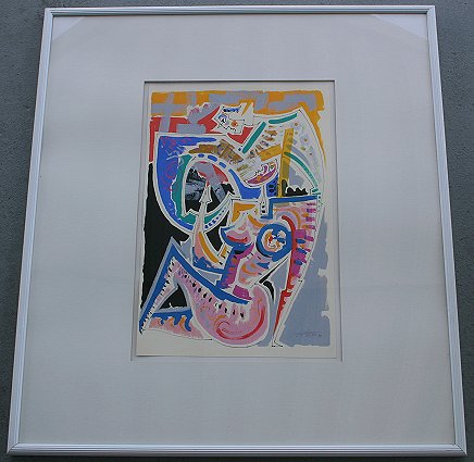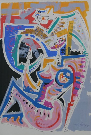 PREISS, Helmut, (Austrian, 1940-): Abstract figural composition with nude and partner, Mixed Media/Paper, float mounted, 17 3/4'' x 12'', signed lower right and dated 95', encased in professional mat and frame, 29 1/2'' x 26 1/2''.
