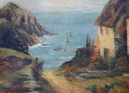 O/C/B BRITTANY COAST?: Signed Probuda?, 20'' x 24'', Circa 1930's. Condition - Laid on board, cracklure throughout, needs cleaning.