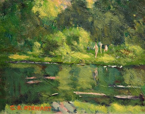 STEWART, C.B., (American, 20th C): ''Swimming Hole'', O/CB, 14'' x 10'', SLL. Est. $200/400**
