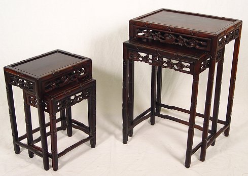 NEST OF 4 CHINESE HARDWOOD SIDE TABLES: The largest being 27''h, the smallest 16''h. 12 1/4''-19 1/2''h.