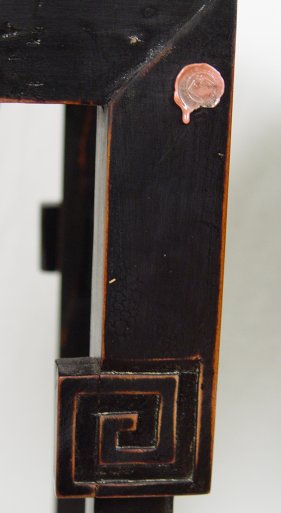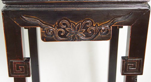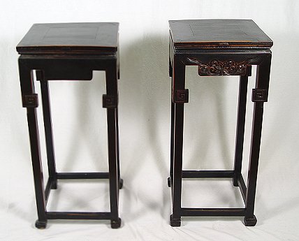 PAIR ORIENTAL FERN STANDS: Soft black lacquer in subtle oriental motif, 34''h., 15''square, impressed wax seal mark, normal wear to wood and finish.
