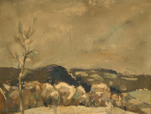 MALOUF, Carl, (American, 20th C.): ''Winter Landscape'', O/C, 28'' x 22'', SLL, original frame, 32'' x 37 1/2'', Lord & Taylor label verso, needs cleaning.
