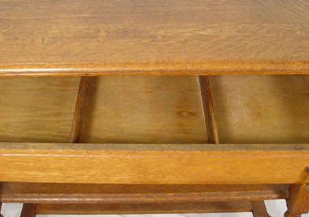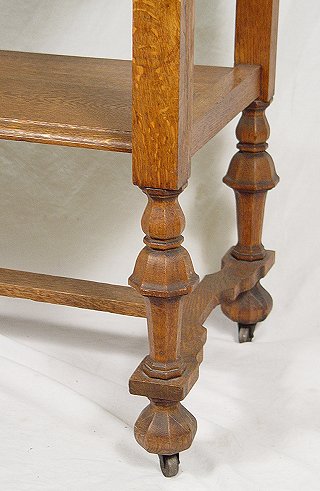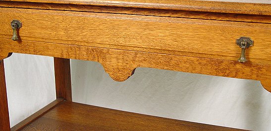 EARLY 20TH C GOLDEN OAK SERVER: One full length drawer, original drop pulls, lower tier is open shelf. 35''h, x 38'' x 18''.