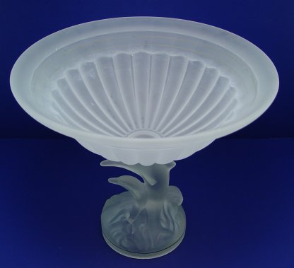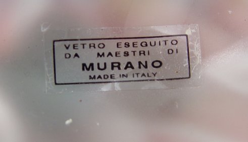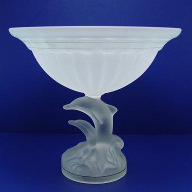MURANO GLASS DOLPHIN PEDESTAL COMPOTE: Satin glass melon ribbed bowl on a pedestal of two dolphins in the surf. Paper label ''Vetro Esguito Da Maestri Muran Made in Italy''. 11''h. 12'' dia.
