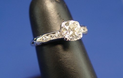 LOVELY 1920'S PLATINUM DIAMOND RING: 1.10ctw featuring a center stone of 92pts, H VS1, small round cut diamonds down each shoulder, platinum mount, size 5.25, 3.7 grams. Est. $2000/3000**