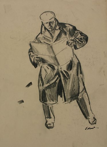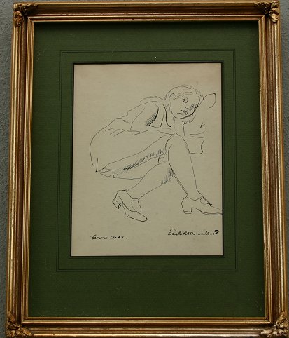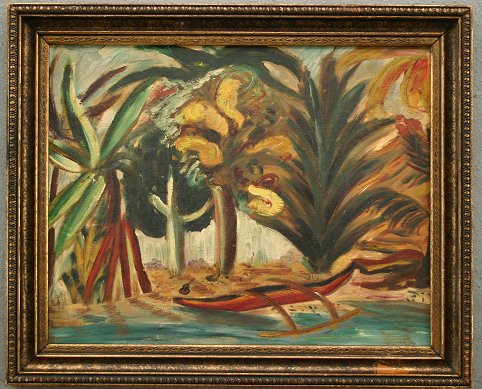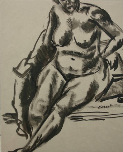 WINSLOW, Earle Bartrom, (American, 1884-1969): Seven piece art lot to include mixed media oils, watercolors and drawings. (1)Tropical scene, O/CB, 12 1/2'' x 16'', monogrammed EBW on the frame. Condition - Needs cleaning. (2)''Anna Mae'', Pen and Ink, 8 3/4'' x 6 3/4'', signed lower right and titled lower left. (3)Landscape, Pen and Ink/Watercolor, 7 1/2'' x 10 1/2'', signed lower right, unframed. (4)Reclining nude, Pen and Ink, 12'' x 9 3/4'', monogrammed lower left, unframed. (5)Seated nude, W/C Gouache, 12'' x 9 1/2'', unframed, monogrammed lower right. (6)Nude study, Ink/W/C, 12'' x 8 3/4''. (7)Man reading a newspaper study, Graphite/Drawing, 12'' x 8 1/4'', unframed, monogrammed lower right. Lot sold ''as is''.