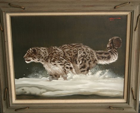 RUST, Don, (American, 20th C): ''Snow Leopard'', O/C, 22'' x 28'', signed upper right and dated 2002, encased in antiqued molding with rope enhancements, 30'' x 36''.