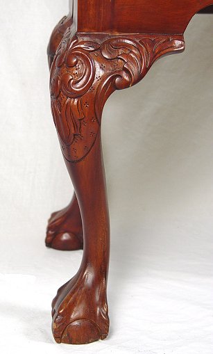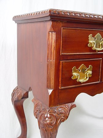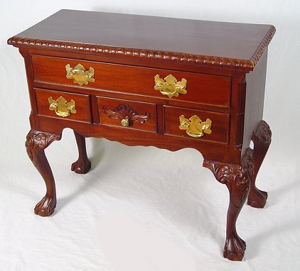 DIMINUTIVE CHIPPENDALE STYLE LOWBOY: One drawer over three drawers, carved knees over ball and claw feet, 32 3/4''w. x 15'' x 28''h.